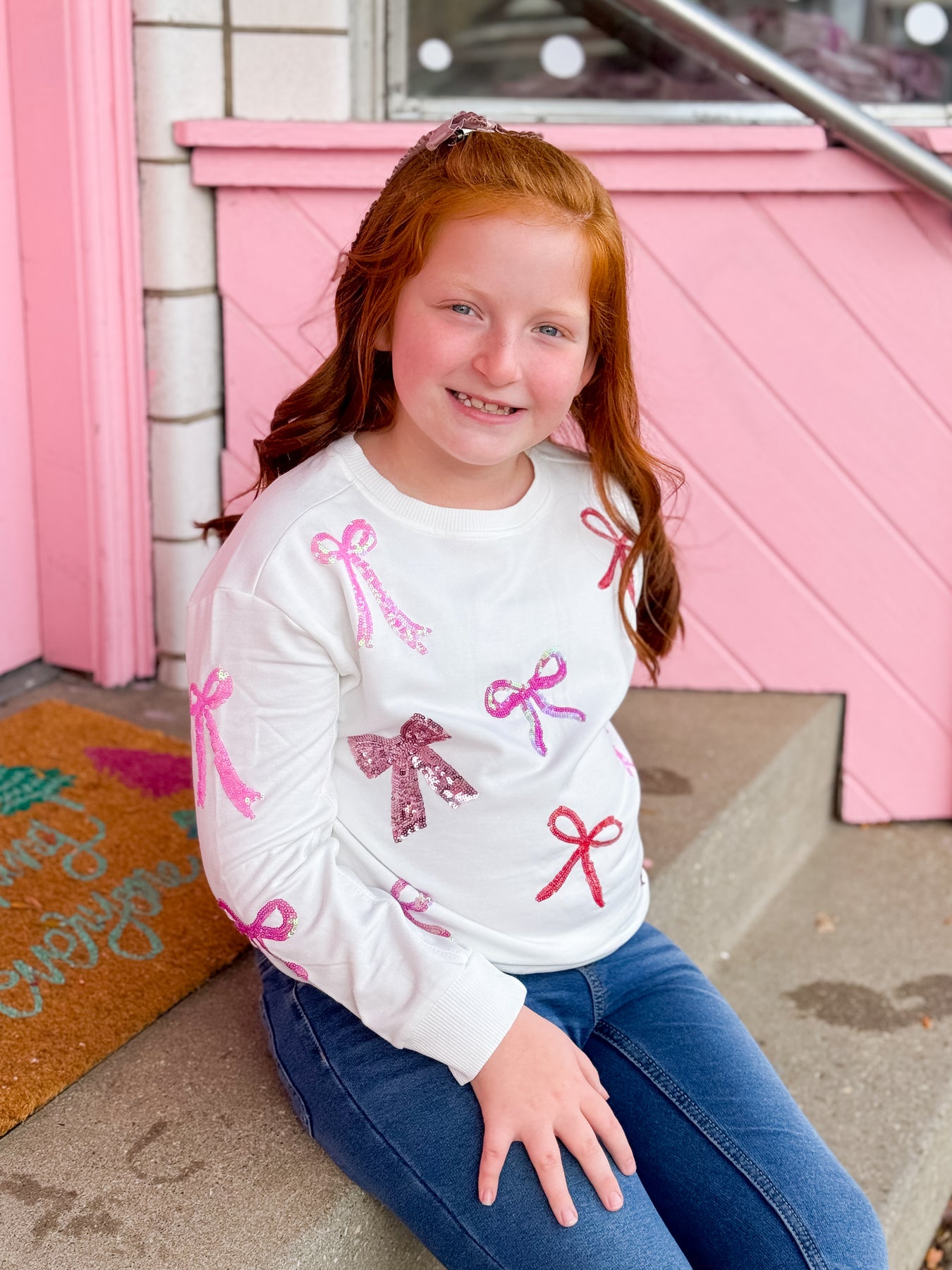 Light up your holiday with the cutie Sarah Bows Sweatshirt! This comfy white sweatshirt features sequin Christmas bows, guaranteed to bring some fun and sparkle to your wardrobe. Perfect for festive parties or cozy nights in.