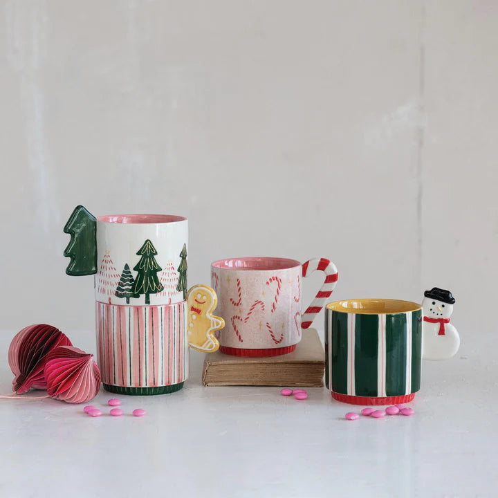 3-3/4" Rd x 4-1/4"H Stoneware Mug with Christmas Icon Handle