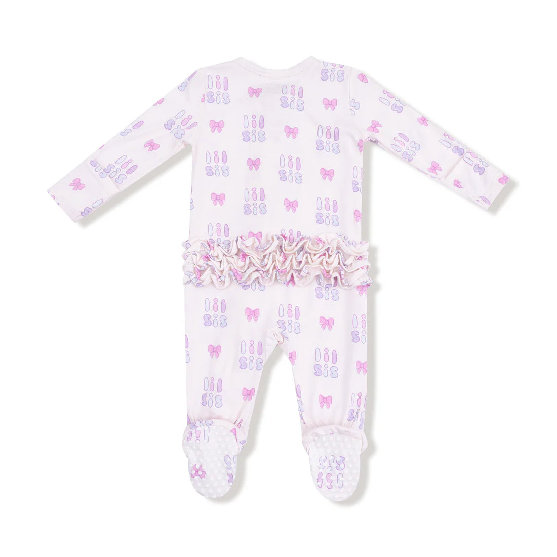 Lil Sis Two-Way Zipper Ruffle Back Footie