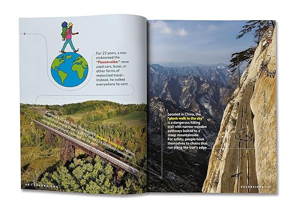 On this epic fact-trail, you will dine inside a volcano and waterslide through a shark-filled lagoon. You will meet a cat worth $97 million, a goat who can ride a surfboard, and a daredevil who skydived from space. And there isn’t just one path through these facts—follow detours along the way to see where your curiosity will take you!