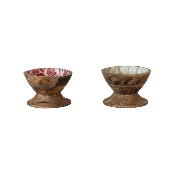 4" Round x 2-3/4"H Enameled Mango Wood Footed Bowl, 2 Styles