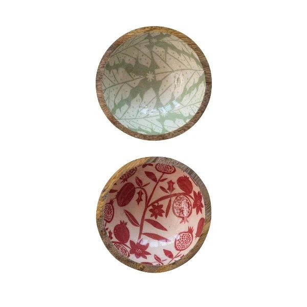 Mango Wood Bowl with Holiday Pattern