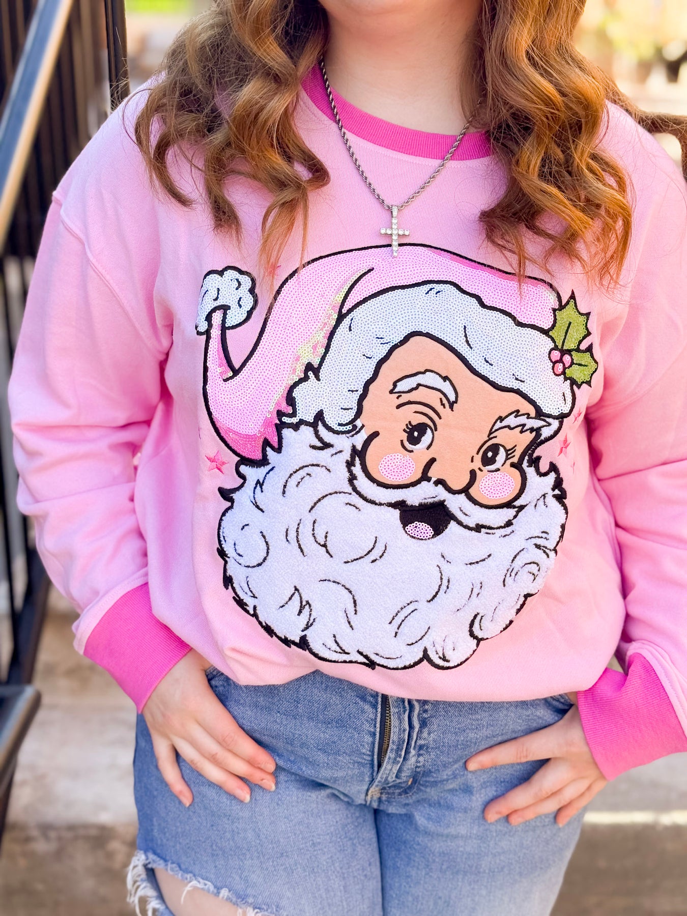 Jolly Pink Santa Sweatshirt