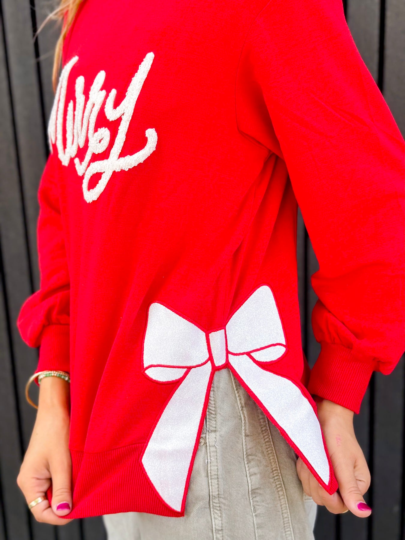 Elevate your casual wardrobe with the Lakelyn Merry Bow sweatshirt, a refined blend of comfort and understated charm. Crafted from soft, premium fabric, it offers a cozy fit perfect for cooler days. The subtle bow detail adds a touch of elegance, making this sweatshirt ideal for those who appreciate effortless sophistication in their everyday attire.
