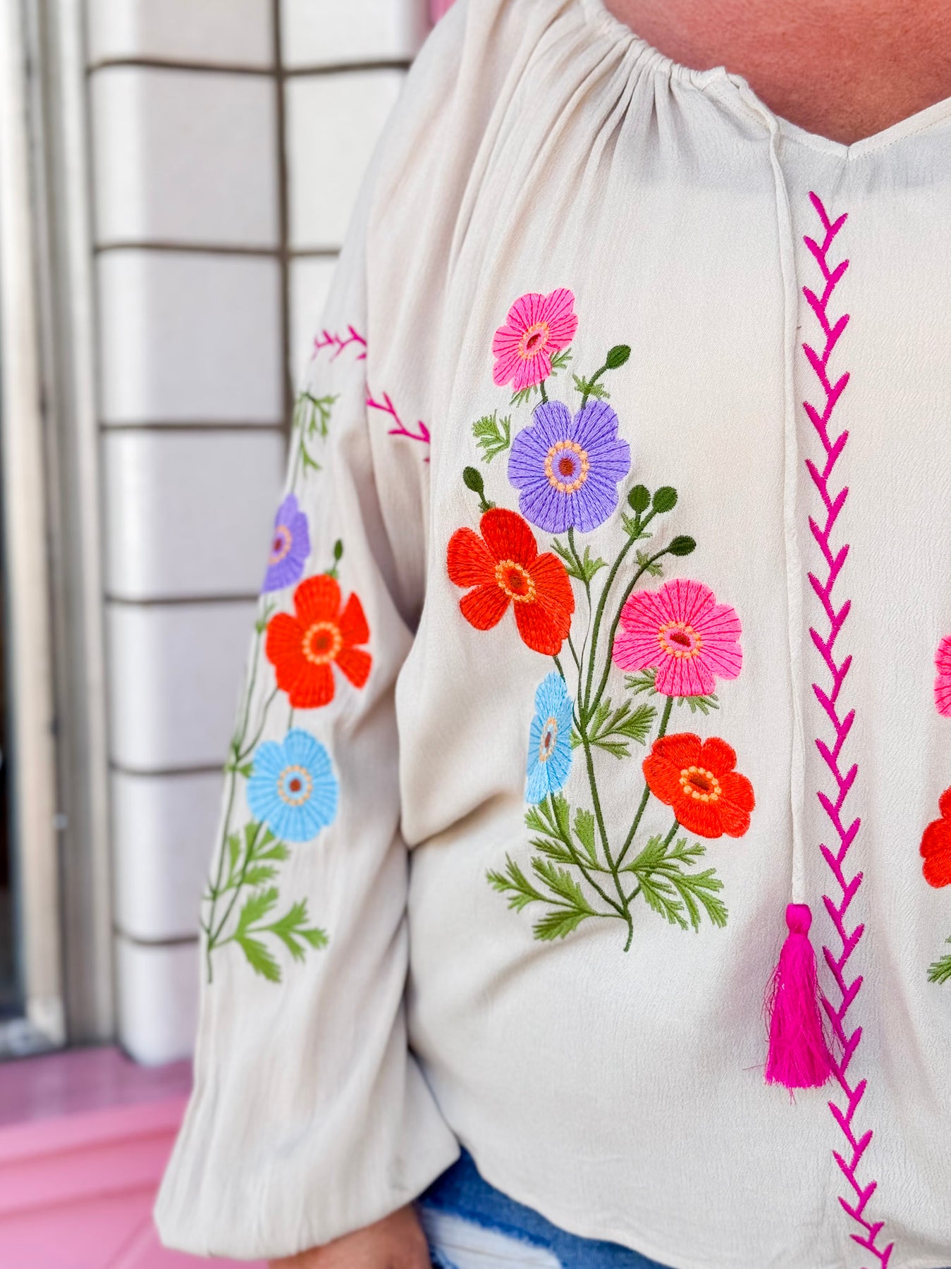 EMBROIDERED RAYON GAUZE BABYDOLL TUNIC