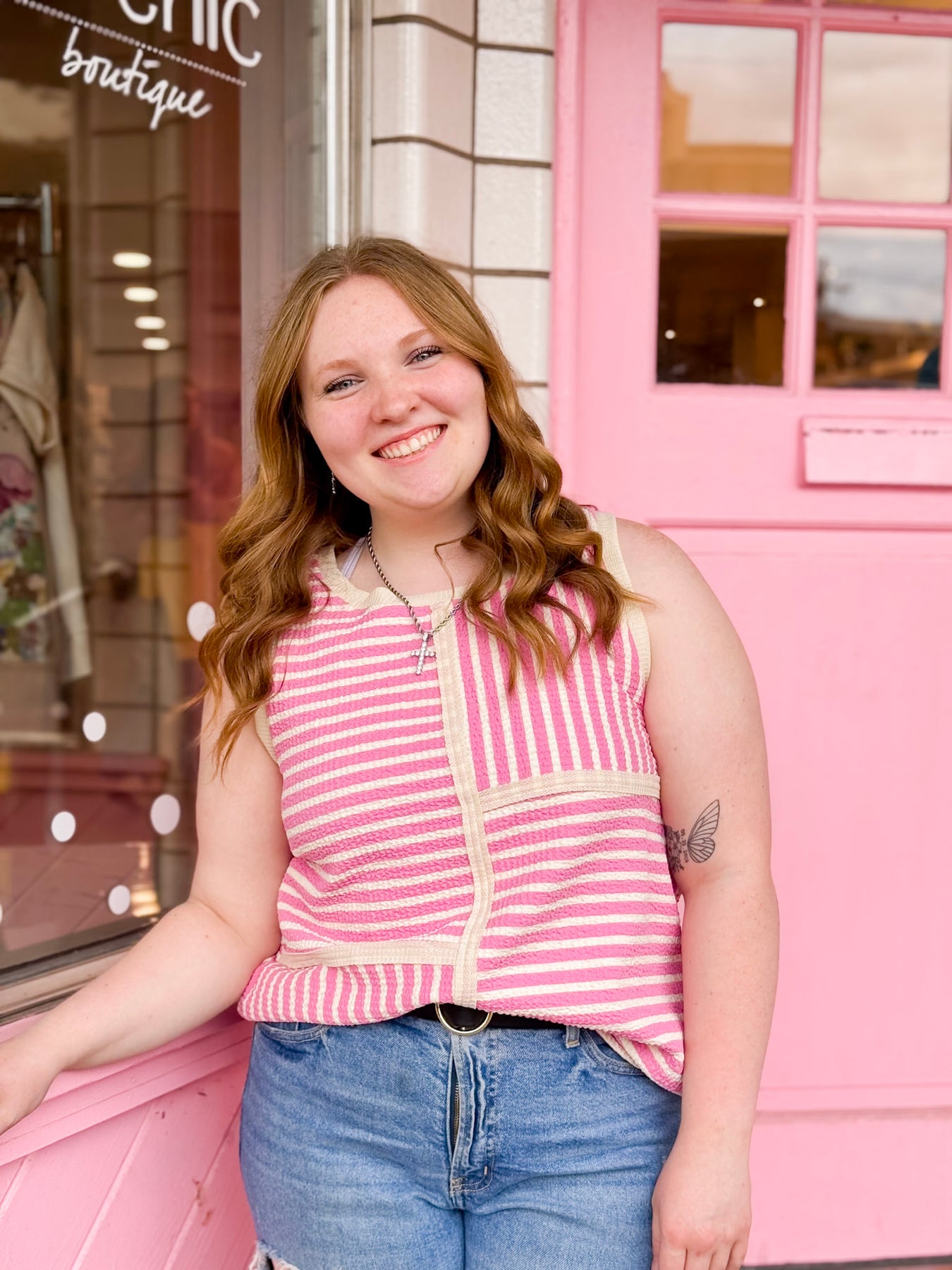 Pink & Cream Striped Sleeveless Top