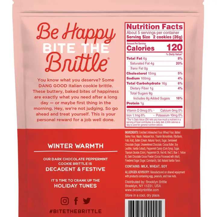 DARK CHOCOLATE PEPPERMINT – WINTER WARMTH ❄️🍫 The deep, rich taste of dark chocolate. The cool burst of peppermint. One bite, and it’s everything you love about winter—crisp air, fresh snowfall, and the cozy feeling of the season. ✔️ Pair it with hot cocoa, coffee, or a festive cocktail ☕🎄 ✔️ Pack it for holiday movie nights, gift baskets, or snowy adventures ❄️🎁 ✔️ Enjoy it straight from the pack—because some flavors are too magical to wait for 📍 Flavor Profile: Intense dark chocolate with a cool peppermint finish Brooklyn Brittle’s Dark Chocolate Peppermint is made for the moments that make winter special—because some flavors just feel like the holidays.